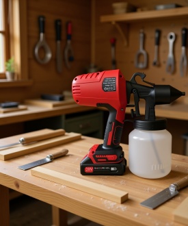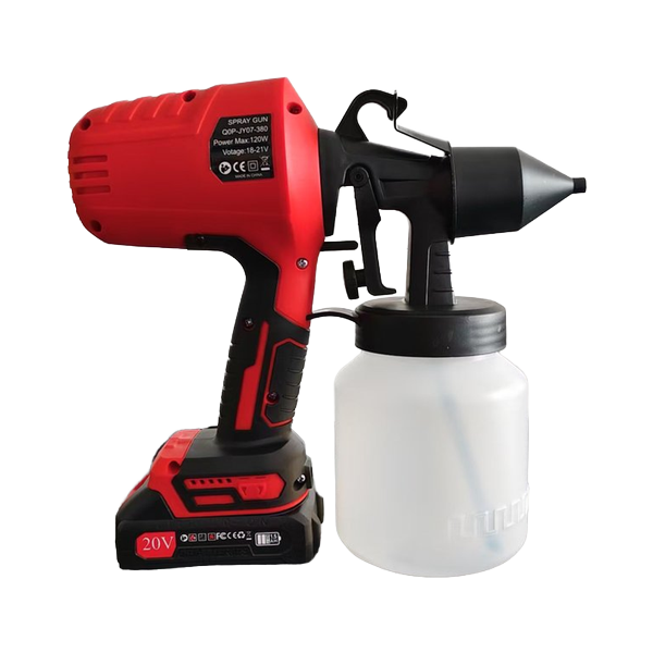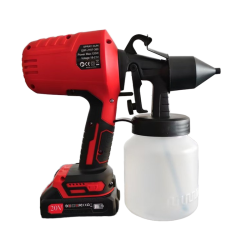 This is an electric paint spray gun with a built-in brushless motor, which is powerful and low-noise. It is equipped with a 20V dual lithium battery for all-day battery life. It has nozzles of various sizes and a large capacity of 800ml to meet the needs of large-area spraying.
